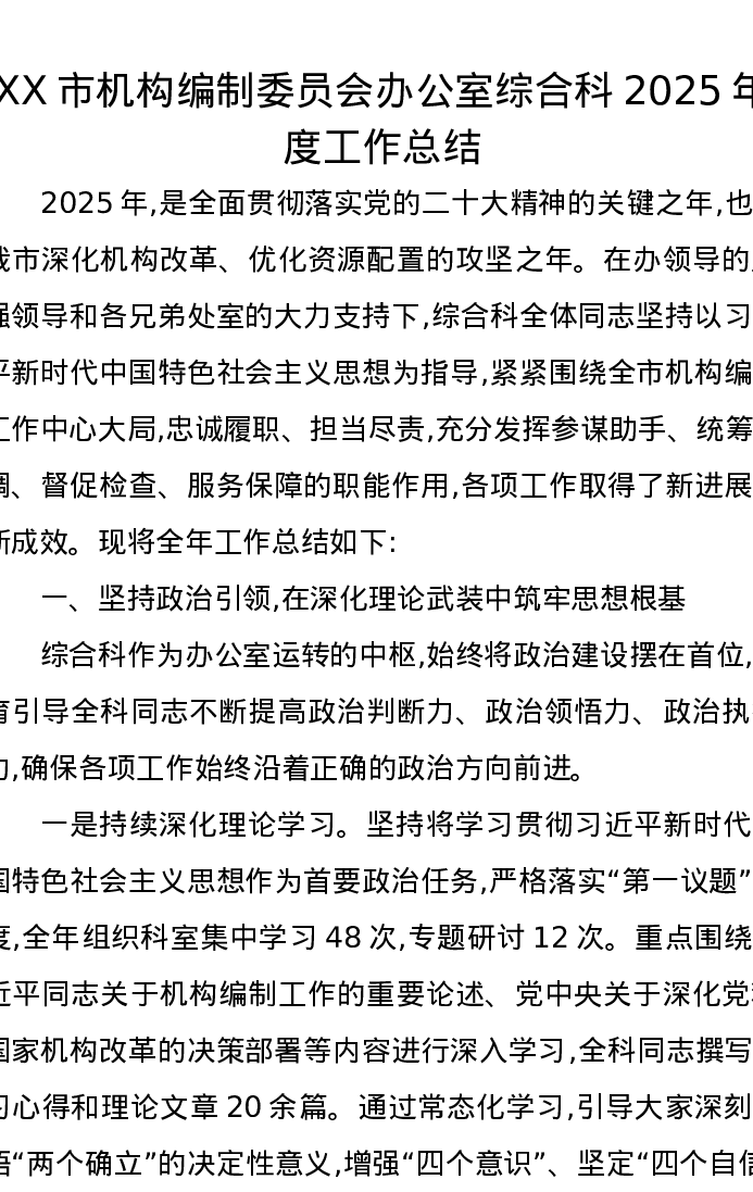 XX市机构编制委员会办公室综合科2025年度工作总结