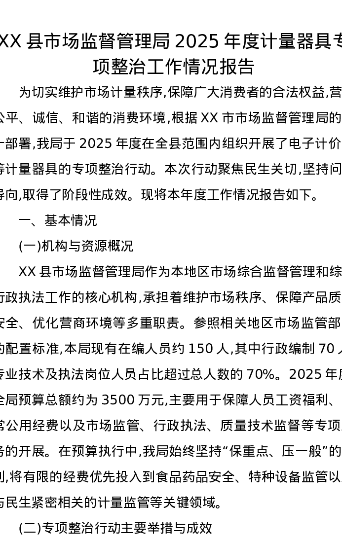 XX县市场监督管理局2025年度计量器具专项整治工作情况报告