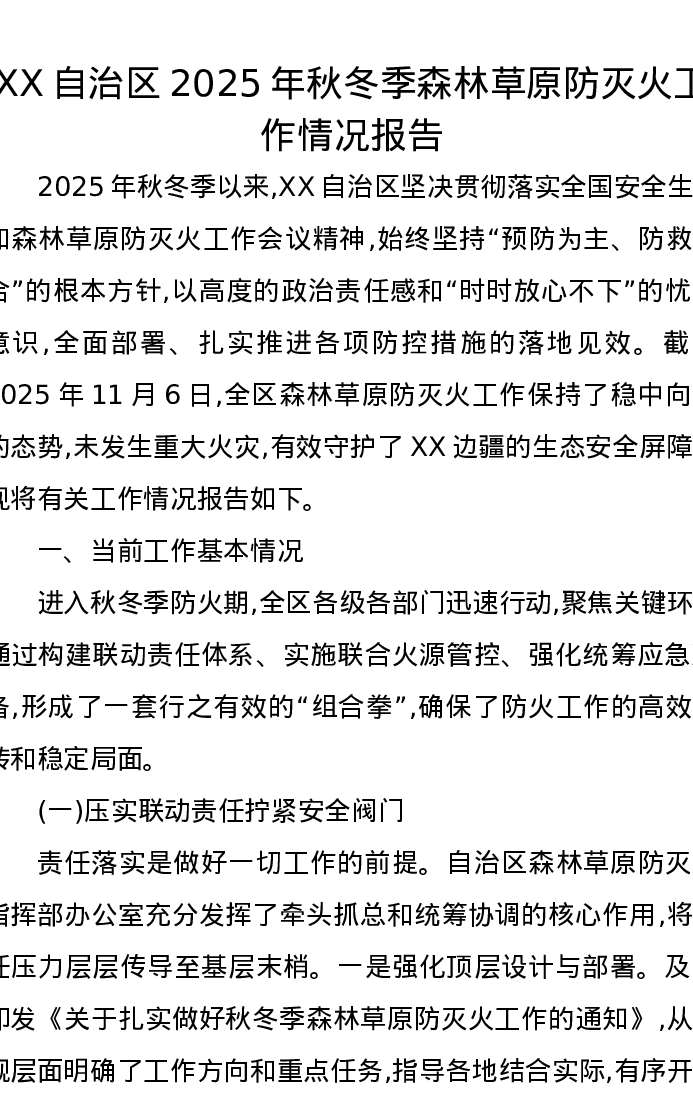 XX自治区2025年秋冬季森林草原防灭火工作情况报告