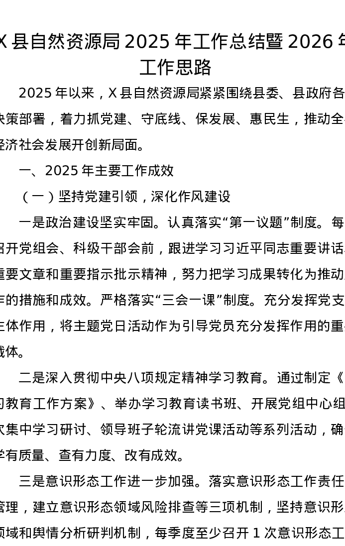 X县自然资源局2025年工作总结暨2026年工作思路