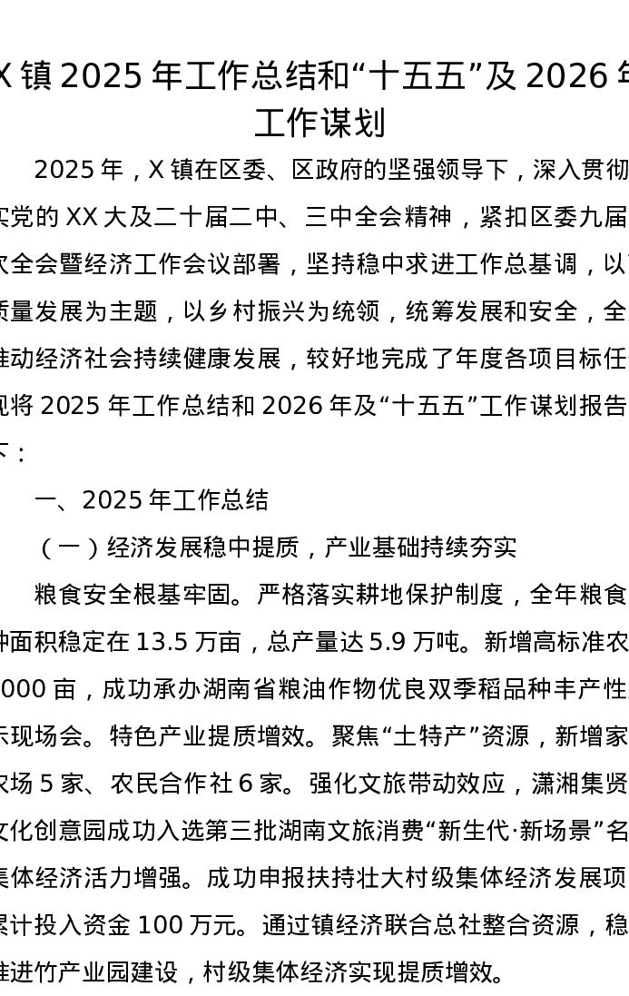 X镇2025年工作总结和“十五五”及2026年工作谋划