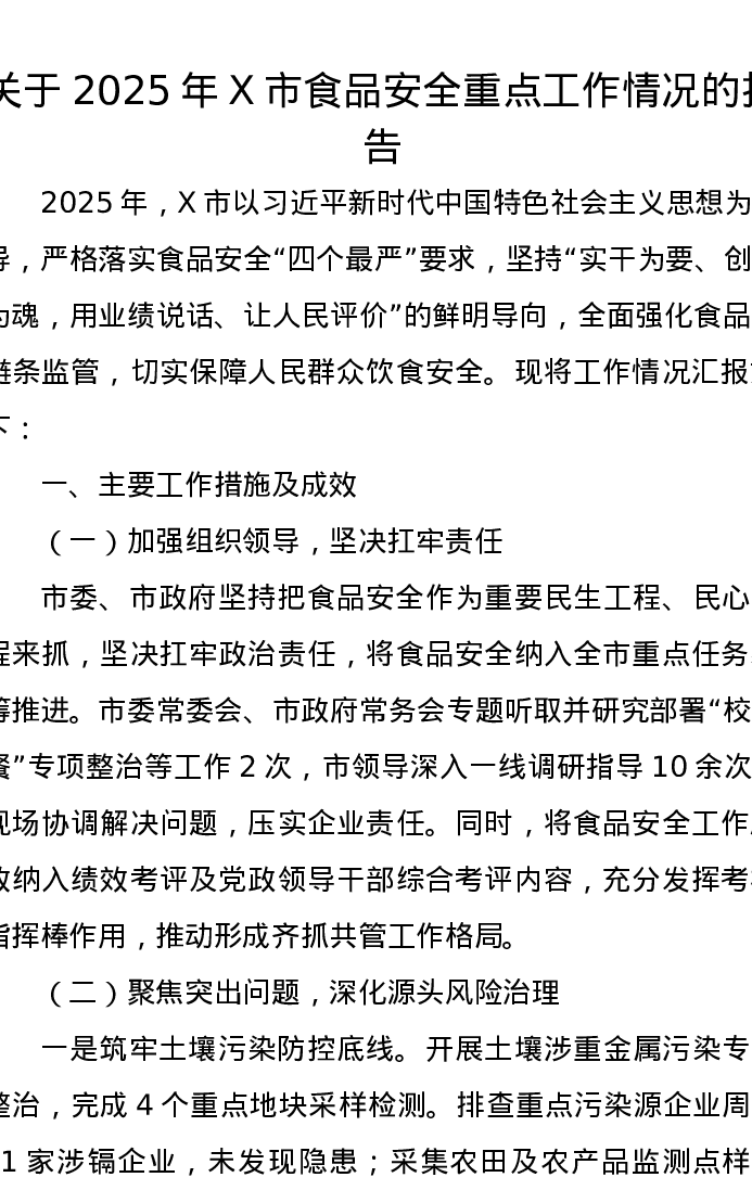 关于2025年X市食品安全重点工作情况的报告