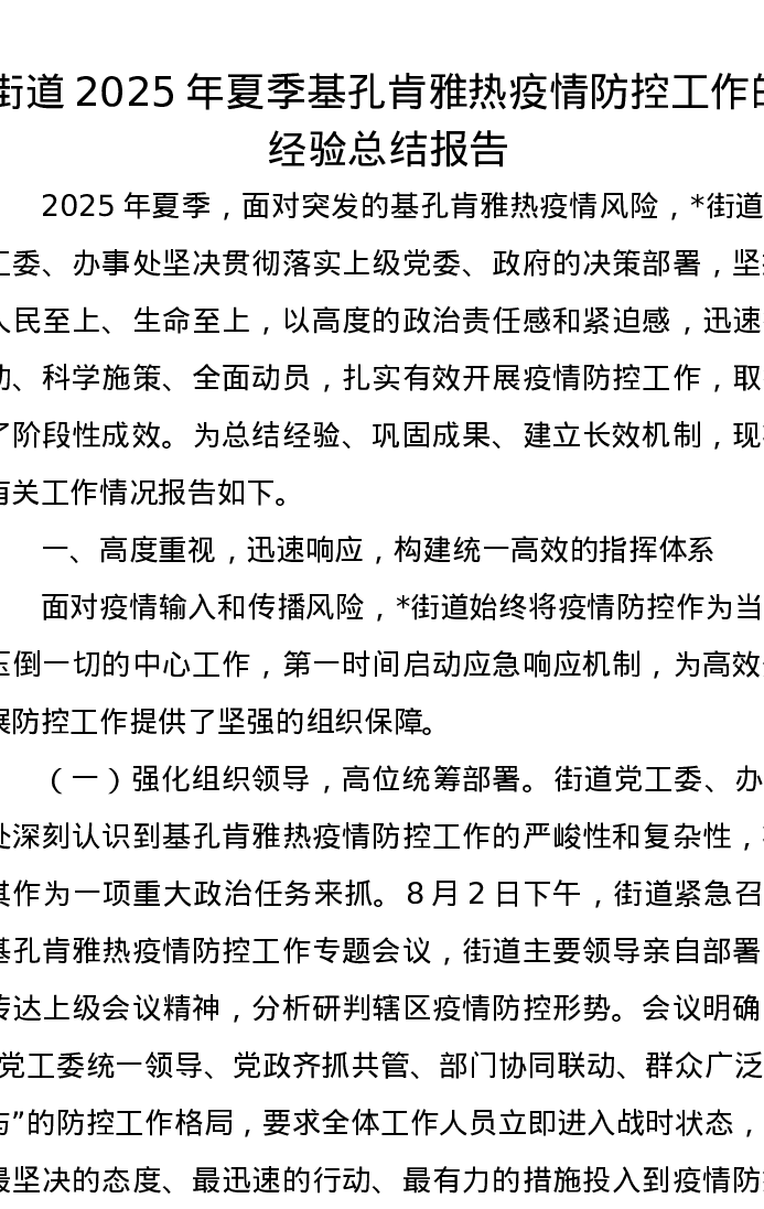 街道2025年夏季基孔肯雅热疫情防控工作的经验总结报告
