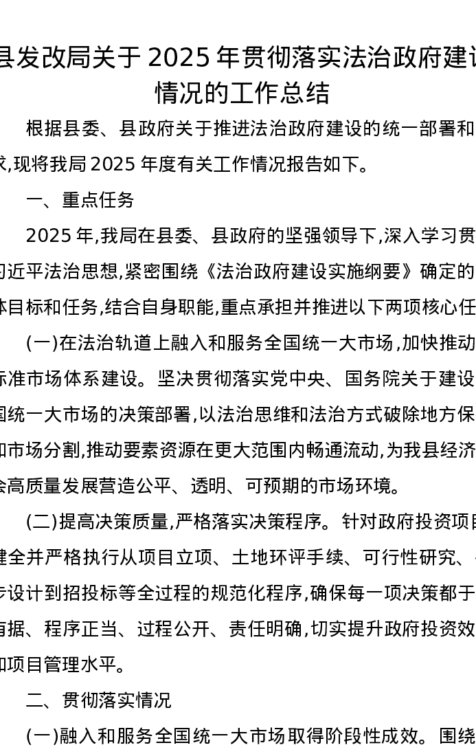县发改局关于2025年贯彻落实法治政府建设情况的工作总结