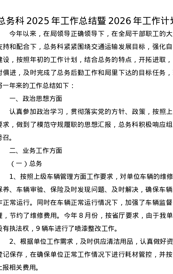 总务科2025年工作总结暨2026年工作计划