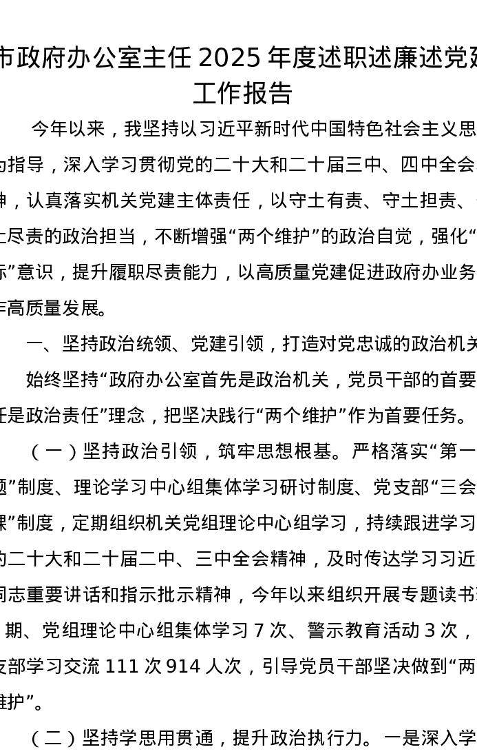市政府办公室主任2025年度述职述廉述党建工作报告