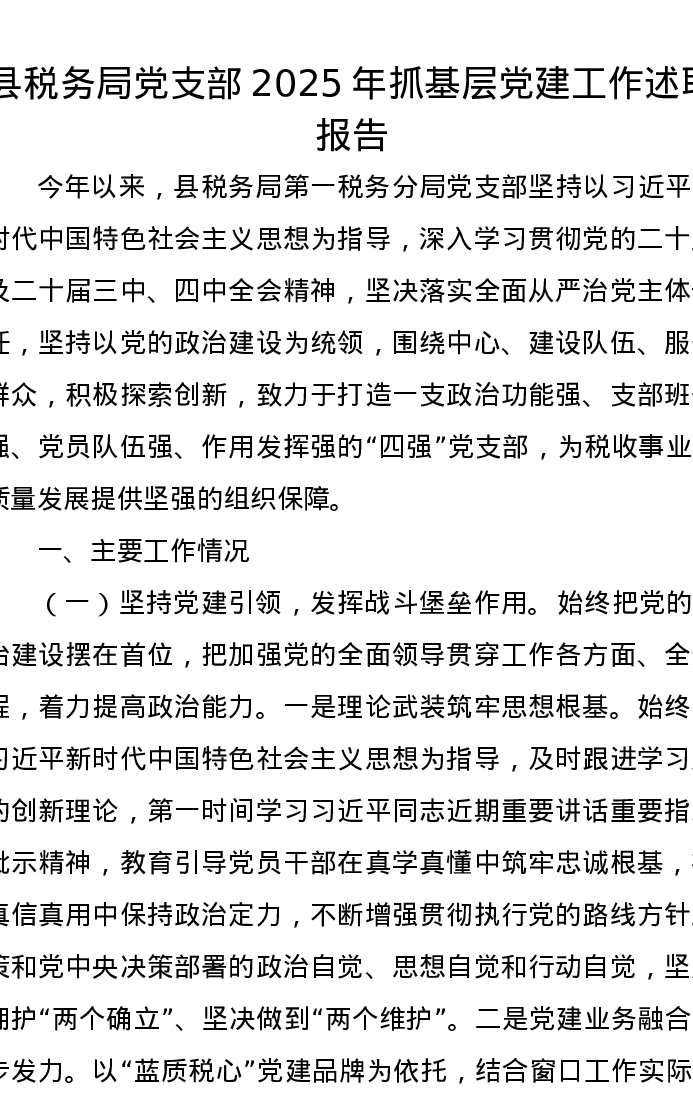 县税务局党支部2025年抓基层党建工作述职报告