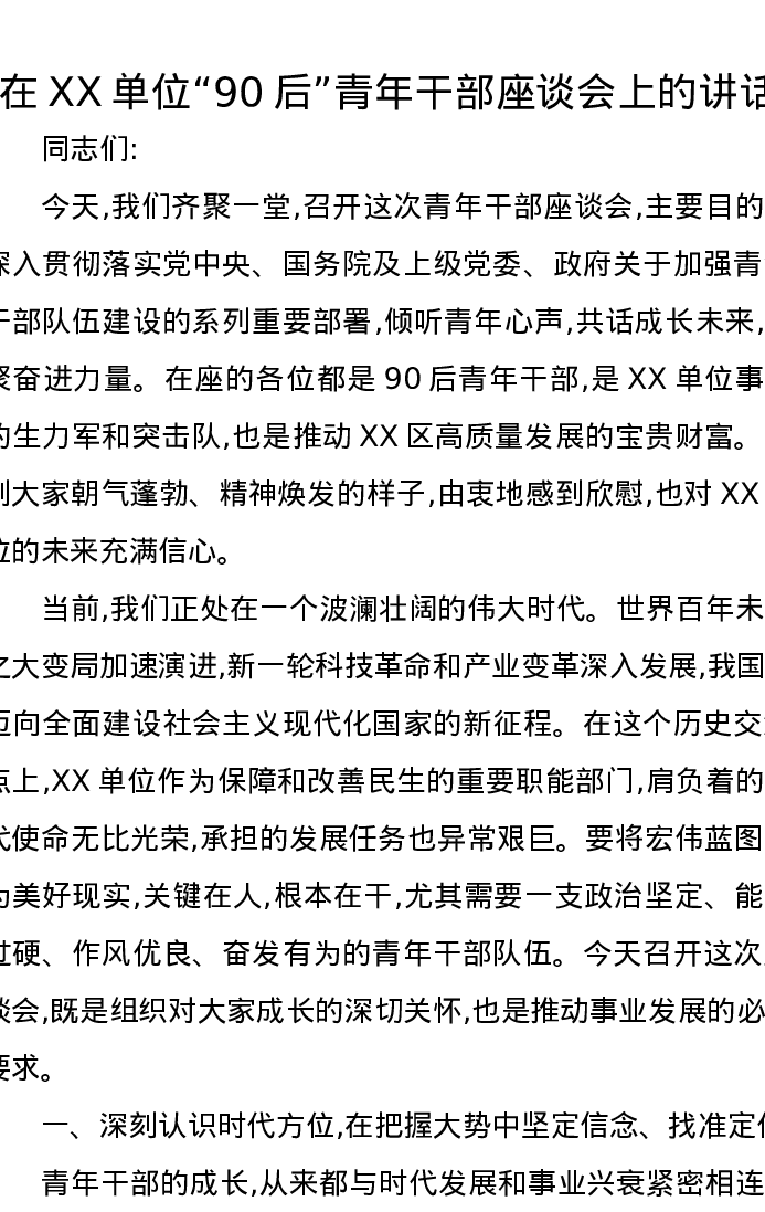 在XX单位“90后”青年干部座谈会上的讲话