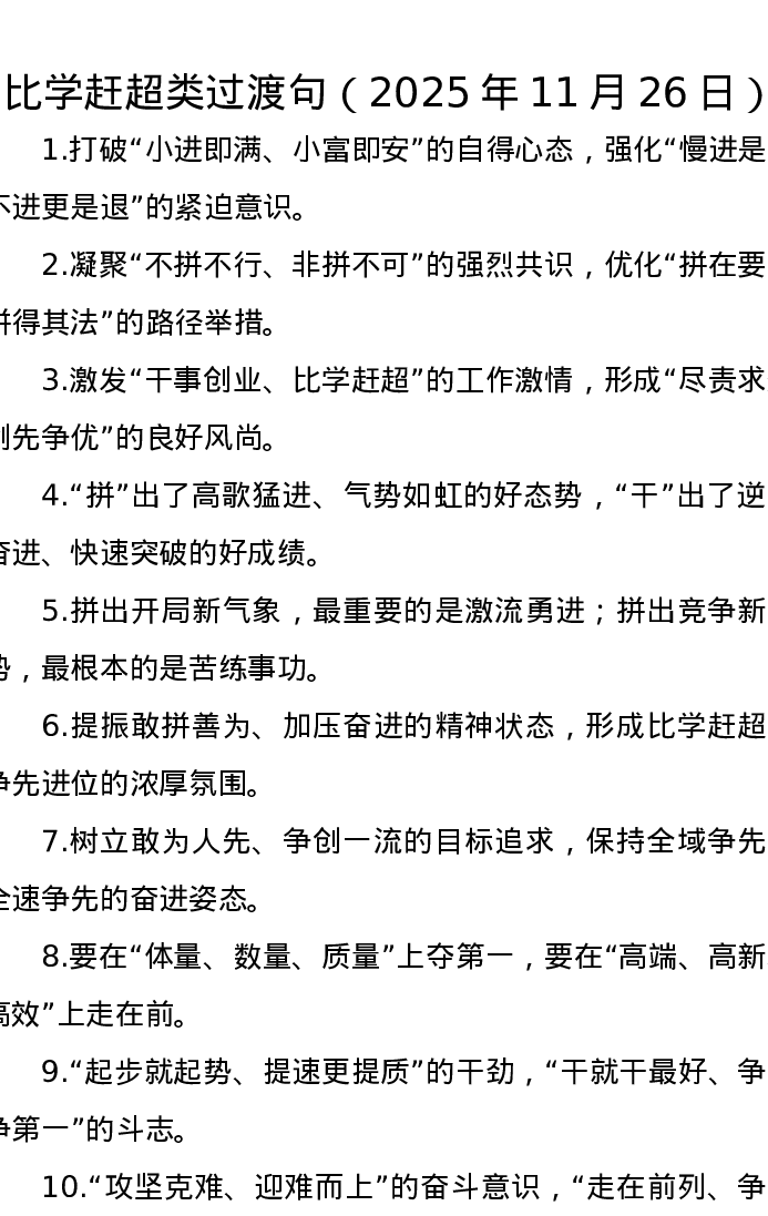 比学赶超类过渡句(2025年11月26日)
