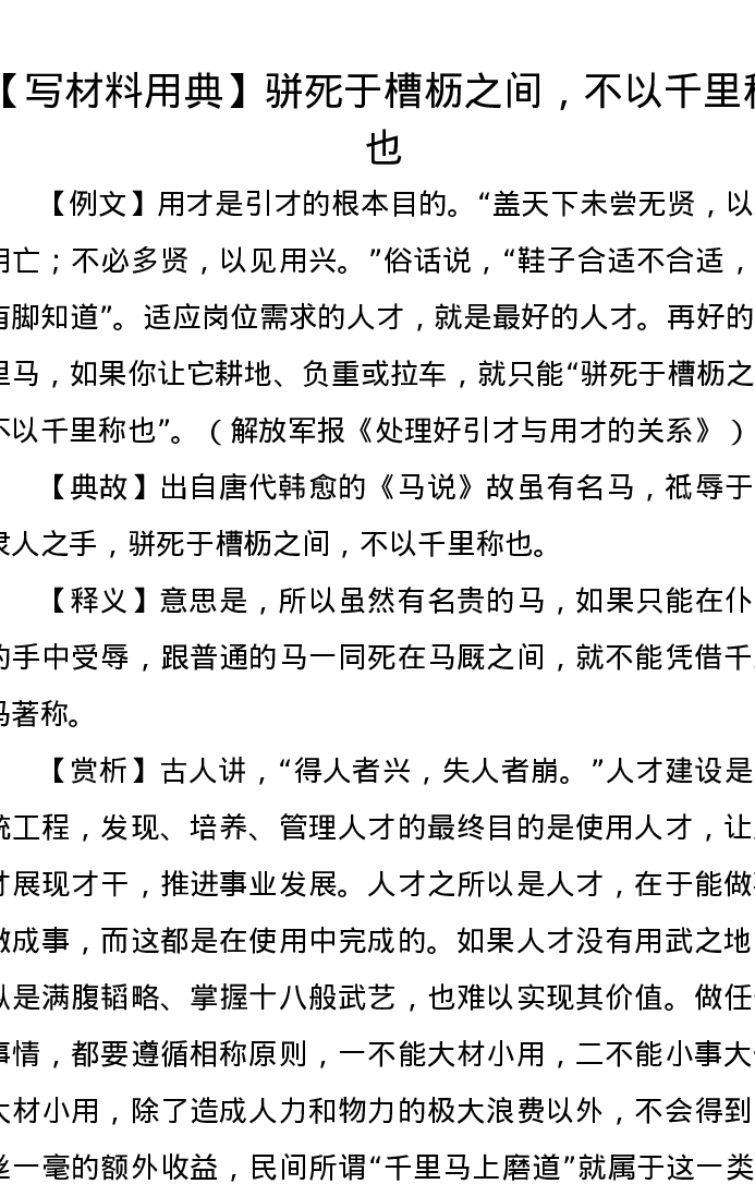 【写材料用典】骈死于槽枥之间,不以千里称也
