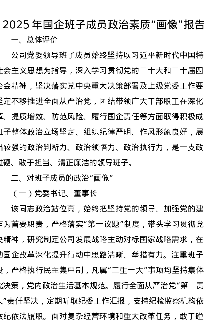 2025年国企班子成员政治素质“画像”报告