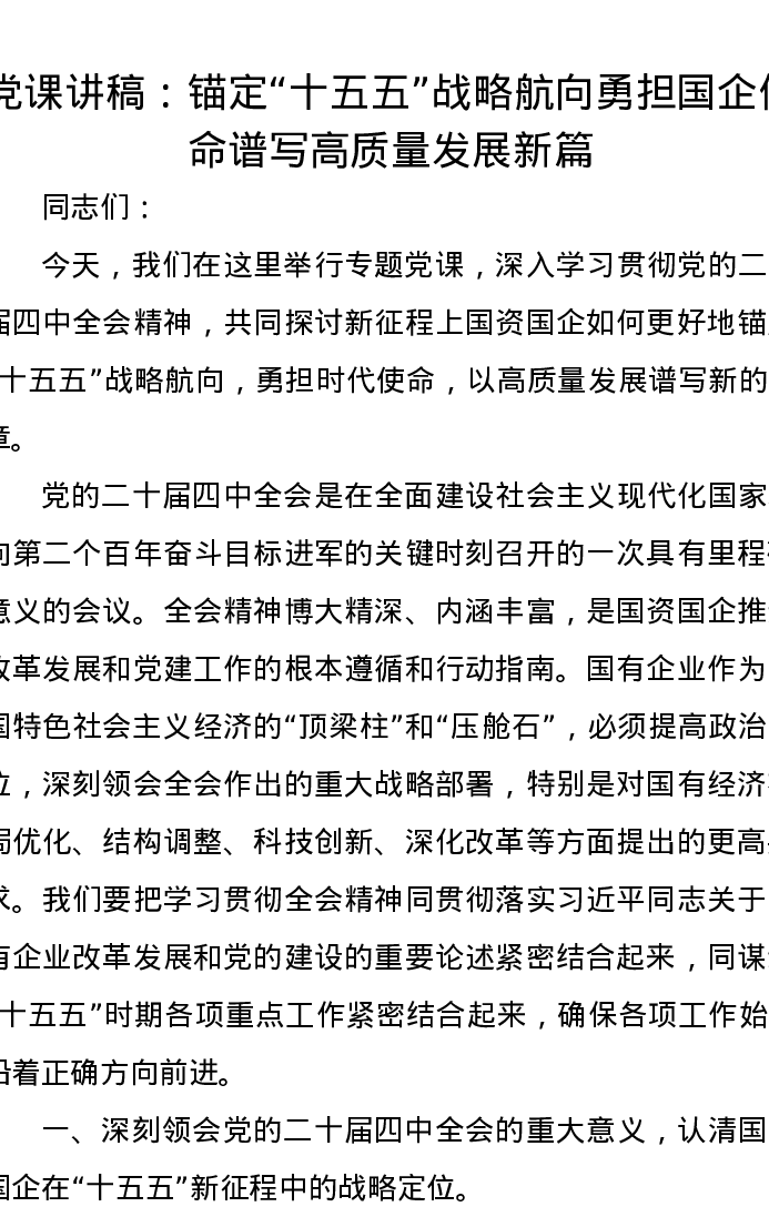 党课讲稿:锚定“十五五”战略航向 勇担国企使命谱写高质量发展新篇