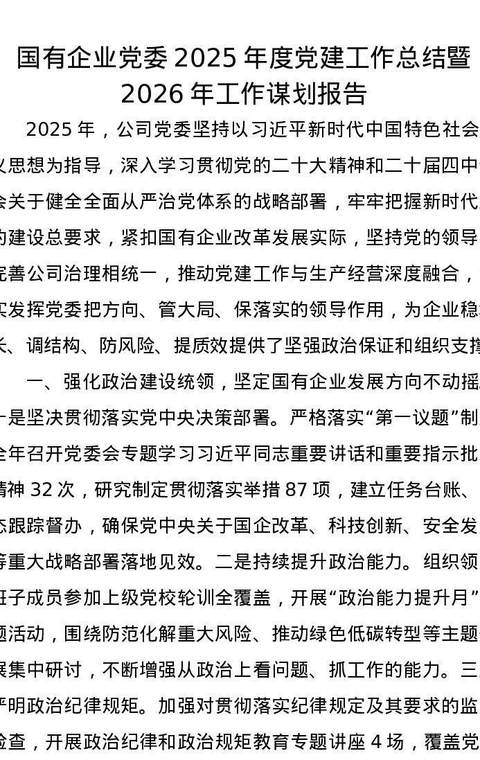 国有企业党委2025年度党建工作总结暨2026年工作谋划报告