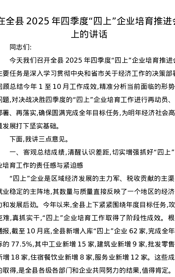 在全县2025年四季度“四上”企业培育推进会上的讲话
