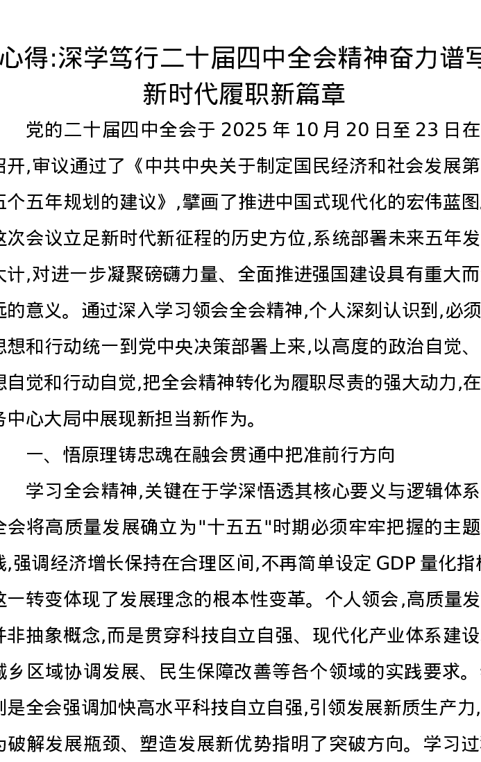 心得深学笃行二十届四中全会精神奋力谱写新时代履职新篇章