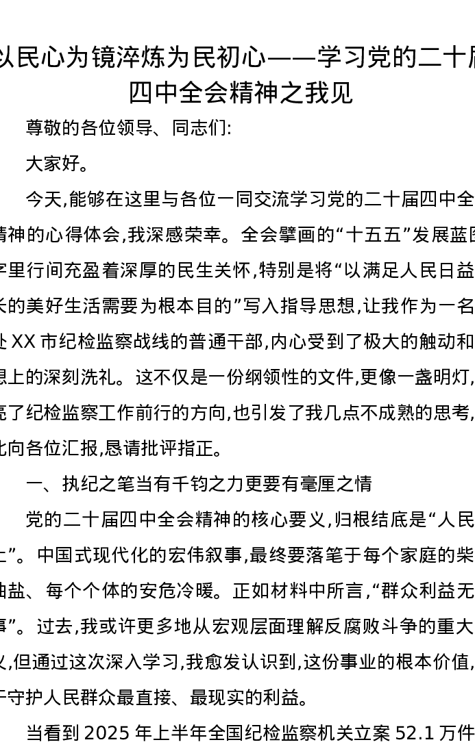 以民心为镜淬炼为民初心——学习党的二十届四中全会精神之我见