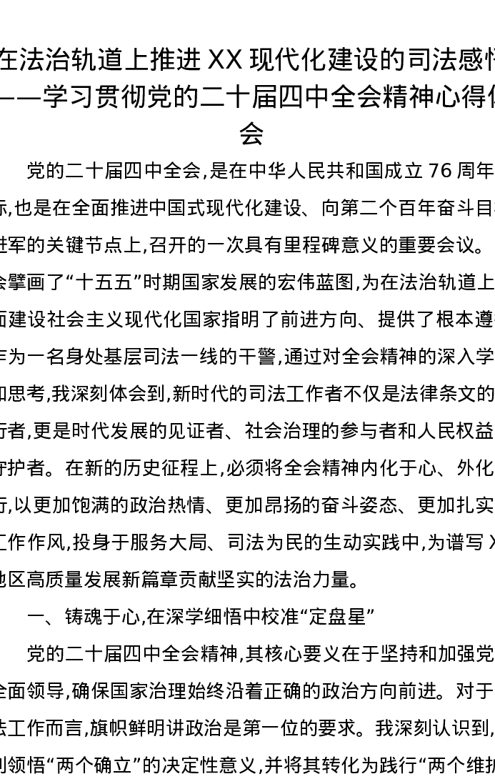在法治轨道上推进XX现代化建设的司法感悟——学习贯彻党的二十届四中全会精神心得体会