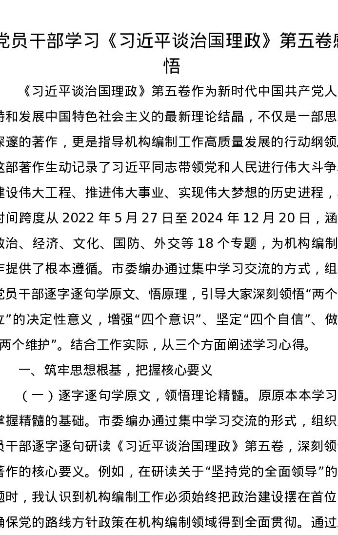 党员干部学习《习近平谈治国理政》第五卷感悟