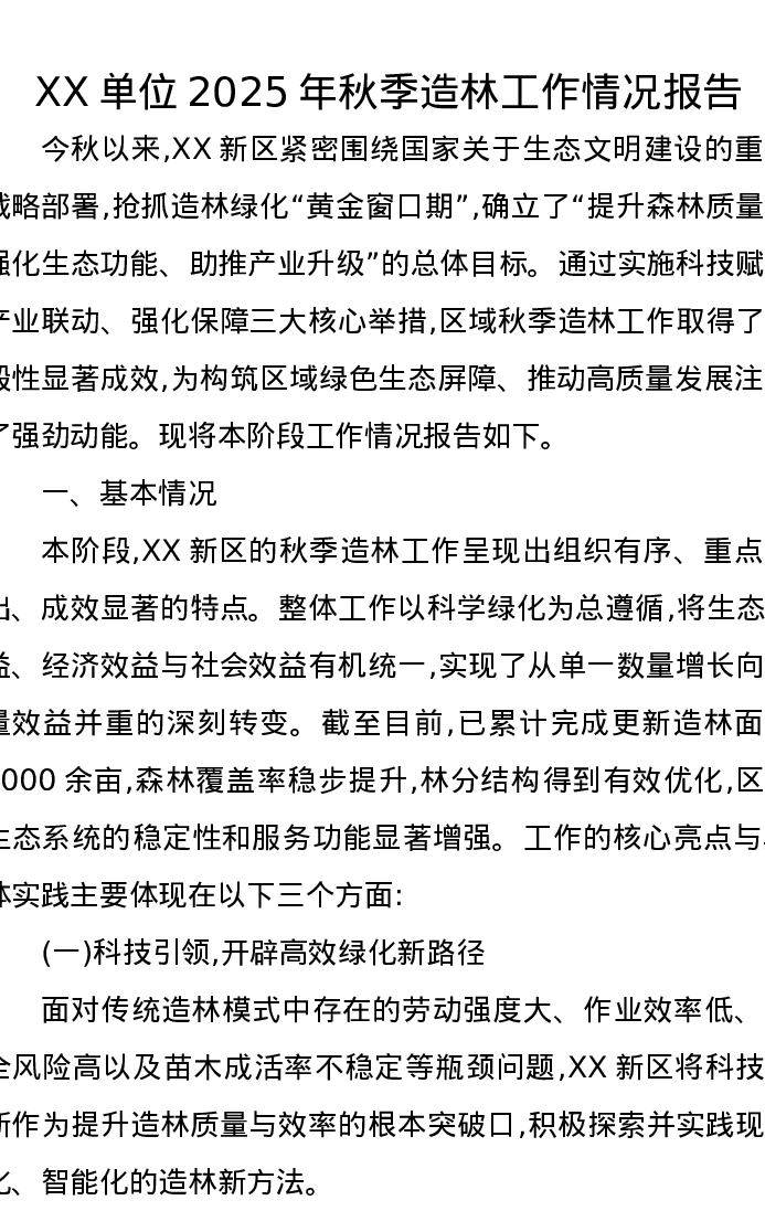XX单位2025年秋季造林工作情况报告