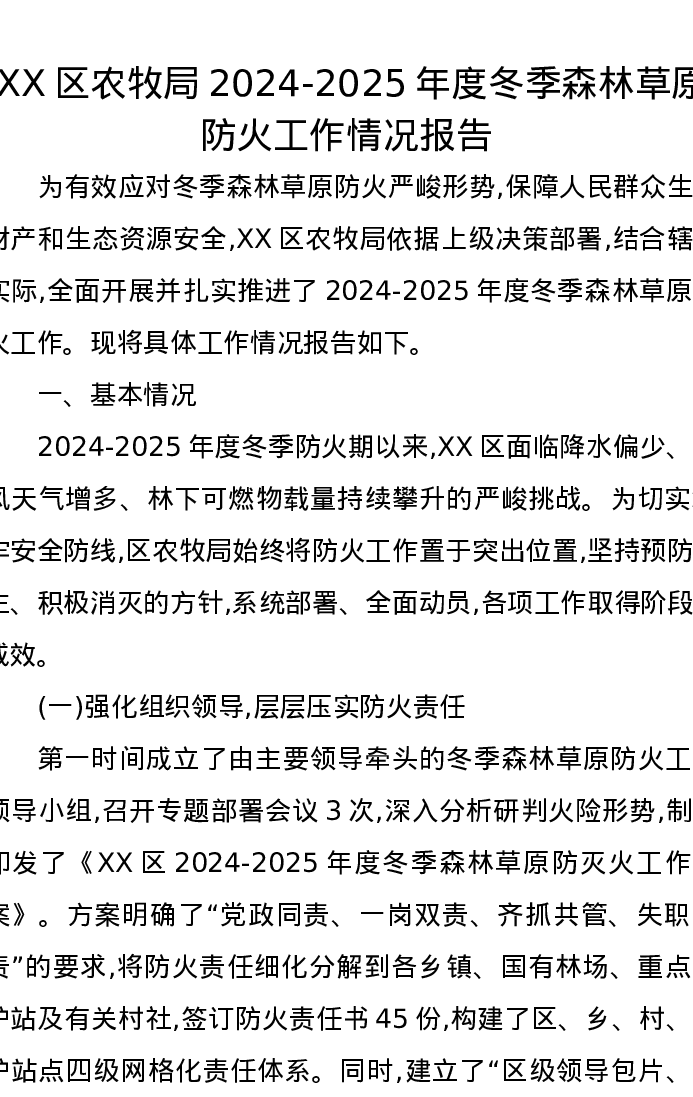 XX区农牧局2024-2025年度冬季森林草原防火工作情况报告
