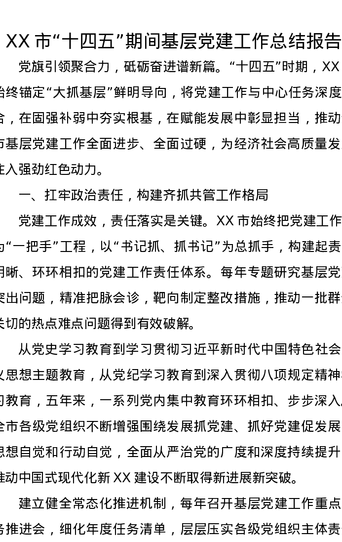 XX市“十四五”期间基层党建工作总结报告