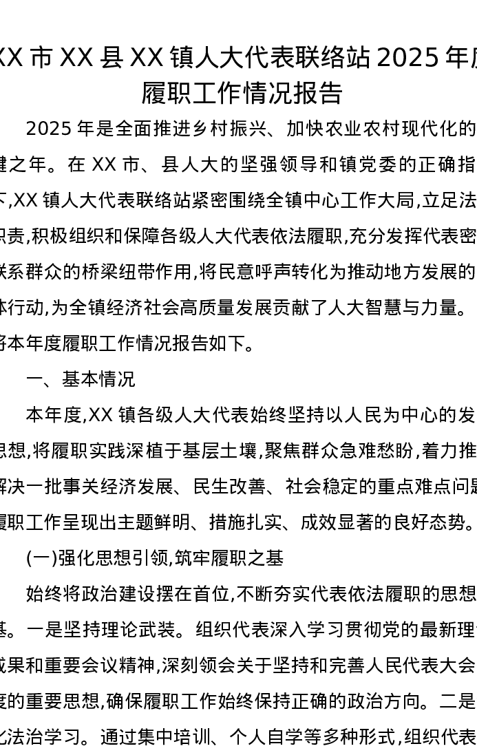 XX市XX县XX镇人大代表联络站2025年度履职工作情况报告