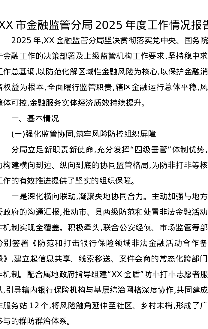 XX市金融监管分局2025年度工作情况报告