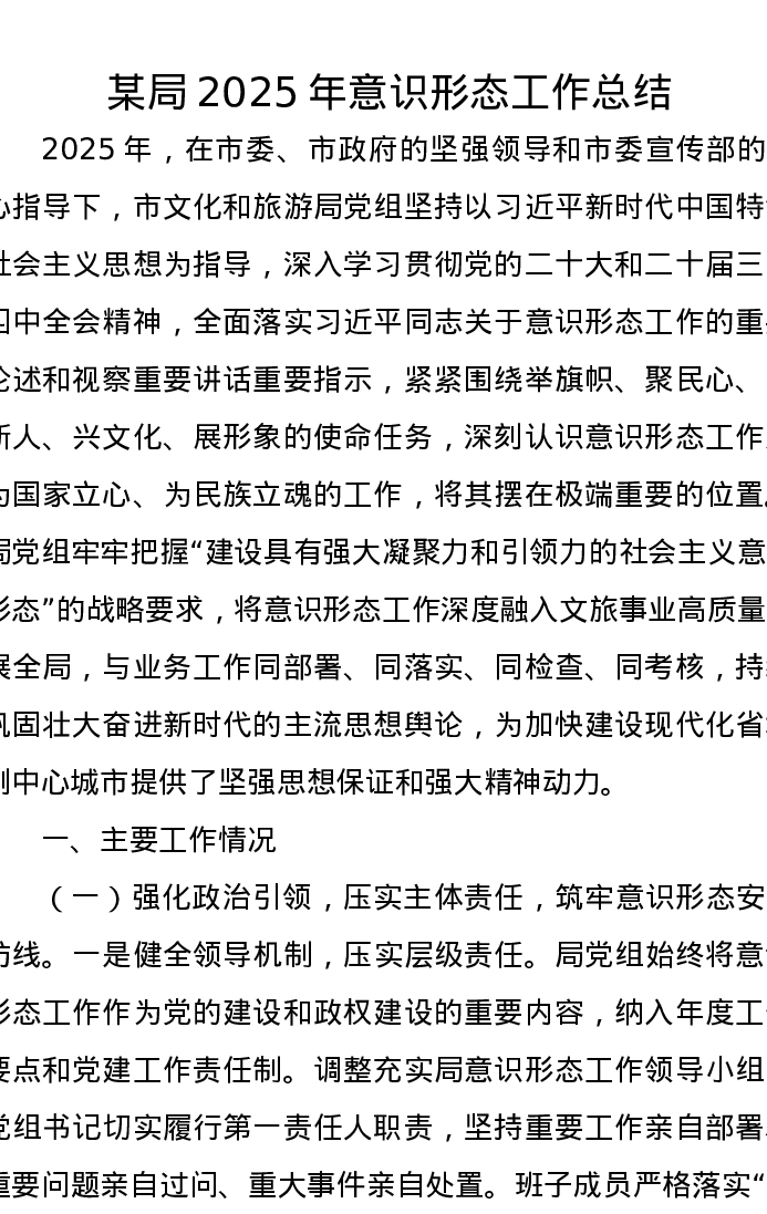 某局2025年意识形态工作总结