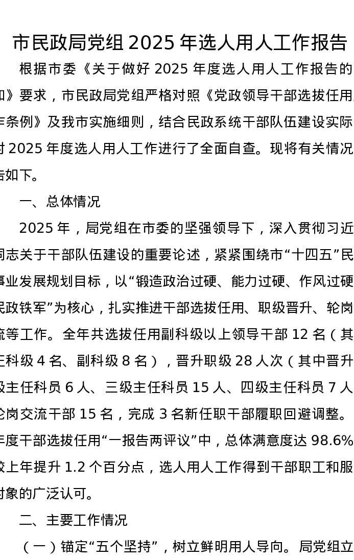 市民政局党组2025年选人用人工作报告