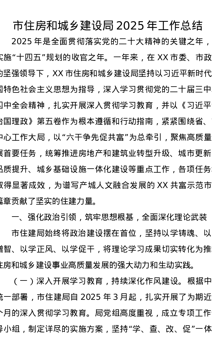 市住房和城乡建设局2025年工作总结