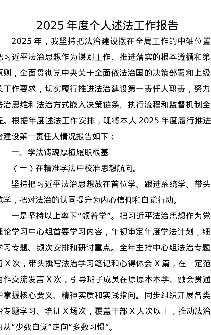 2025年度个人述法工作报告
