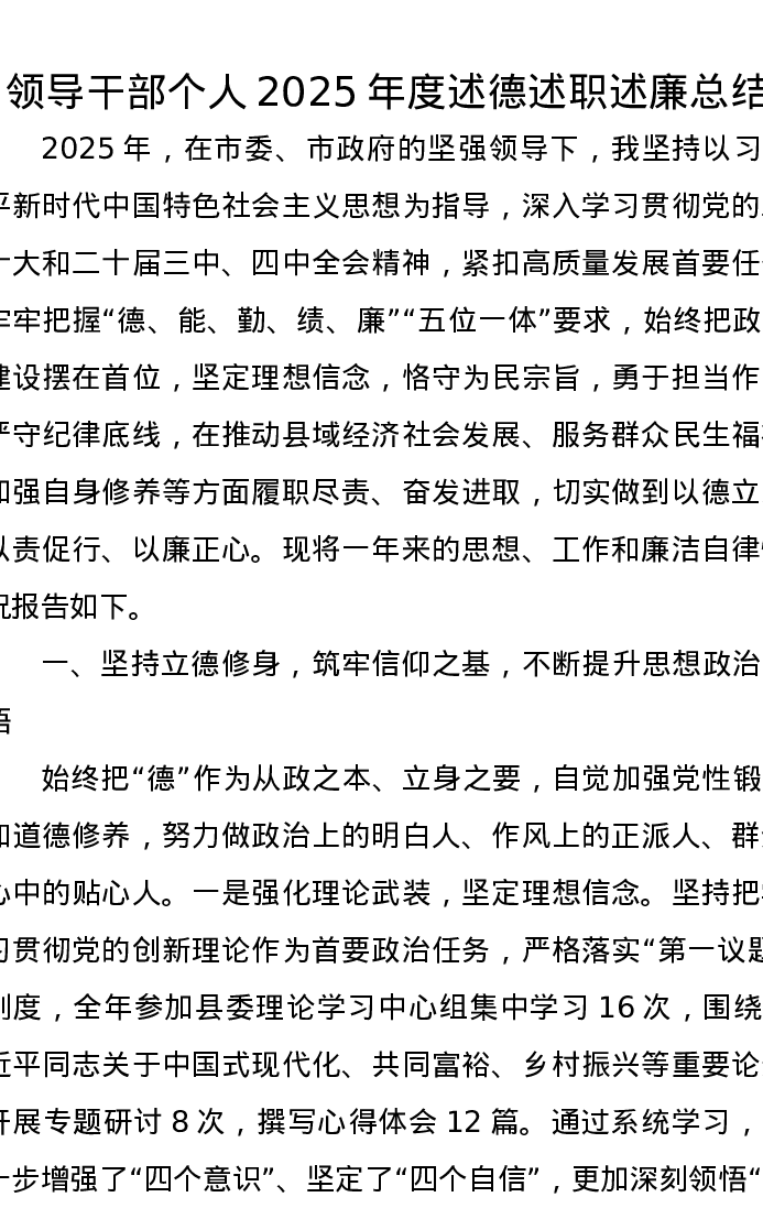 领导干部个人2025年度述德述职述廉总结