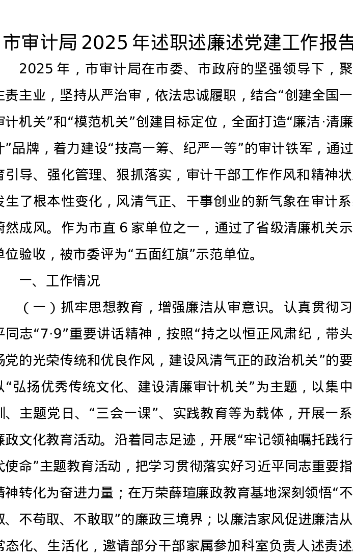 市审计局2025年述职述廉述党建工作报告