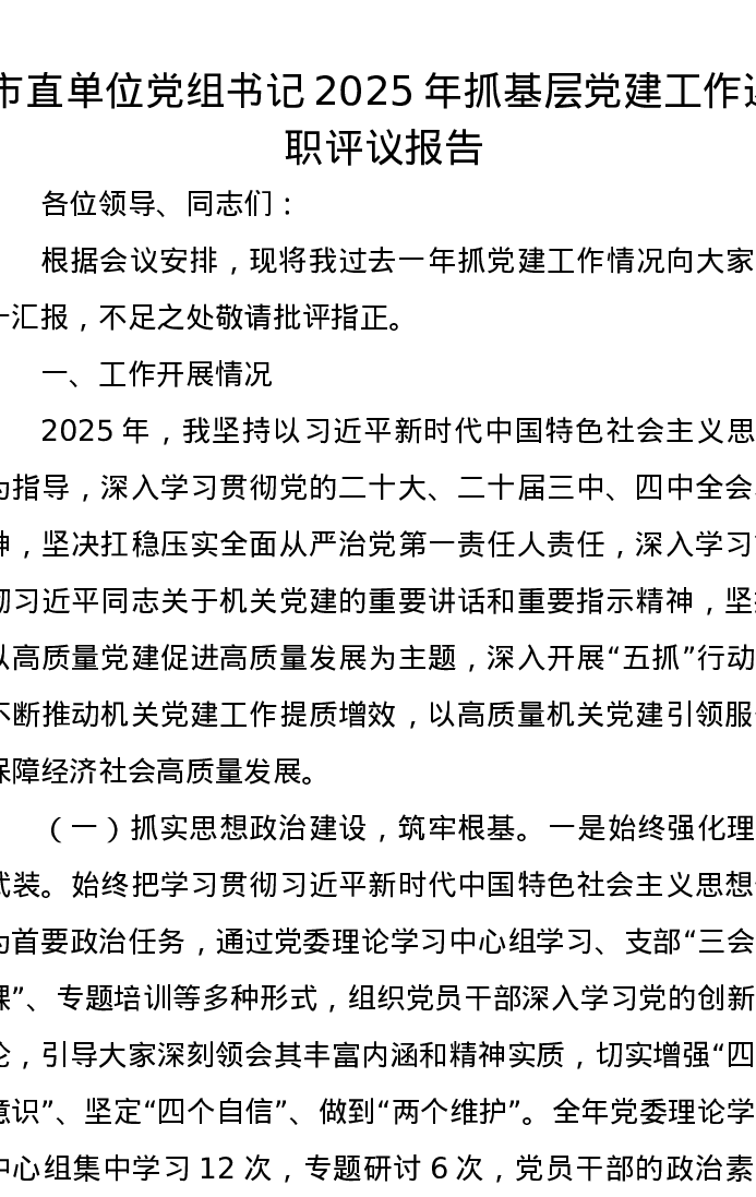 市直单位党组书记2025年抓基层党建工作述职评议报告