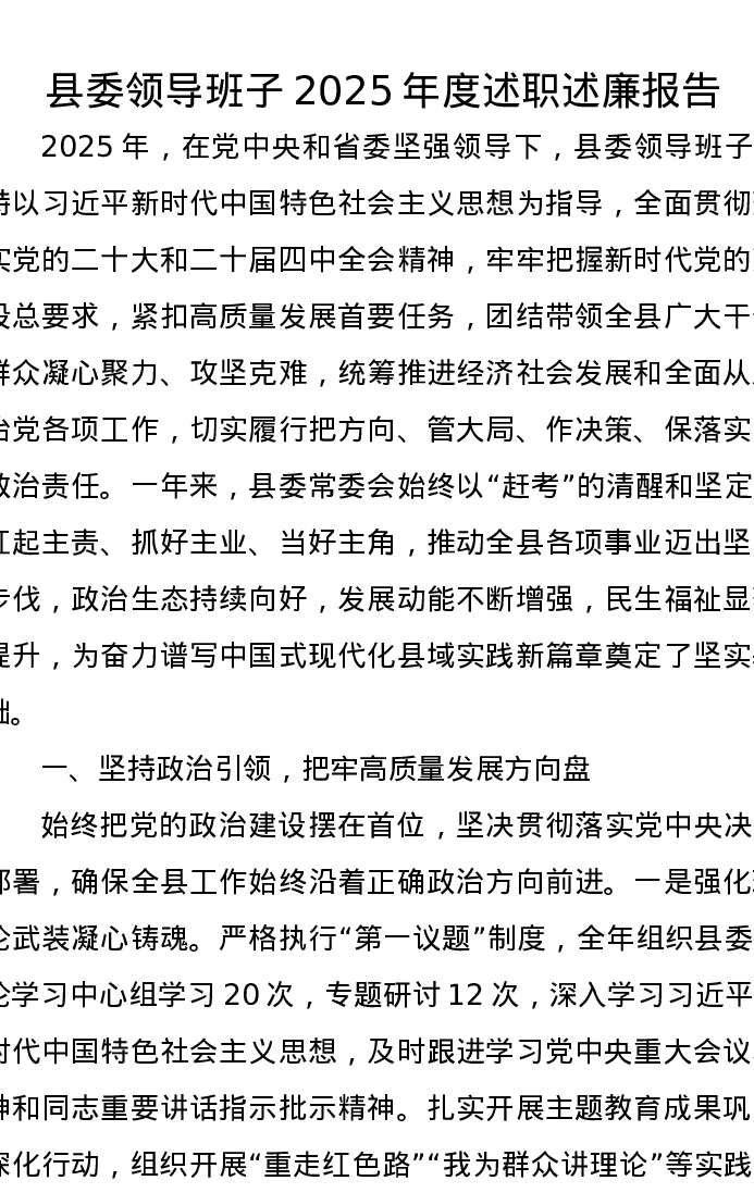 县委领导班子2025年度述职述廉报告