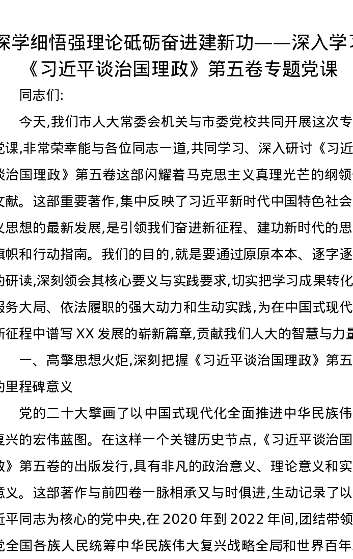 深学细悟强理论砥砺奋进建新功——深入学习《习近平谈治国理政》第五卷专题党课讲稿