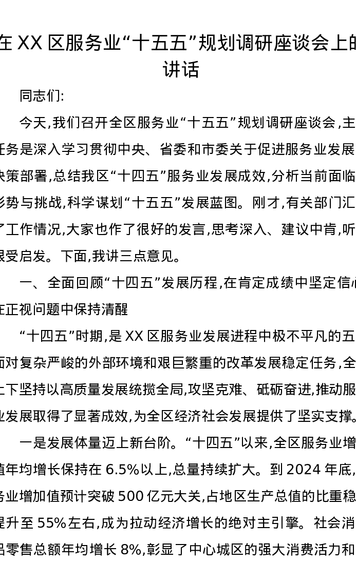 在XX区服务业“十五五”规划调研座谈会上的讲话