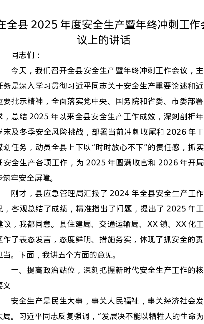 在全县2025年度安全生产暨年终冲刺工作会议上的讲话