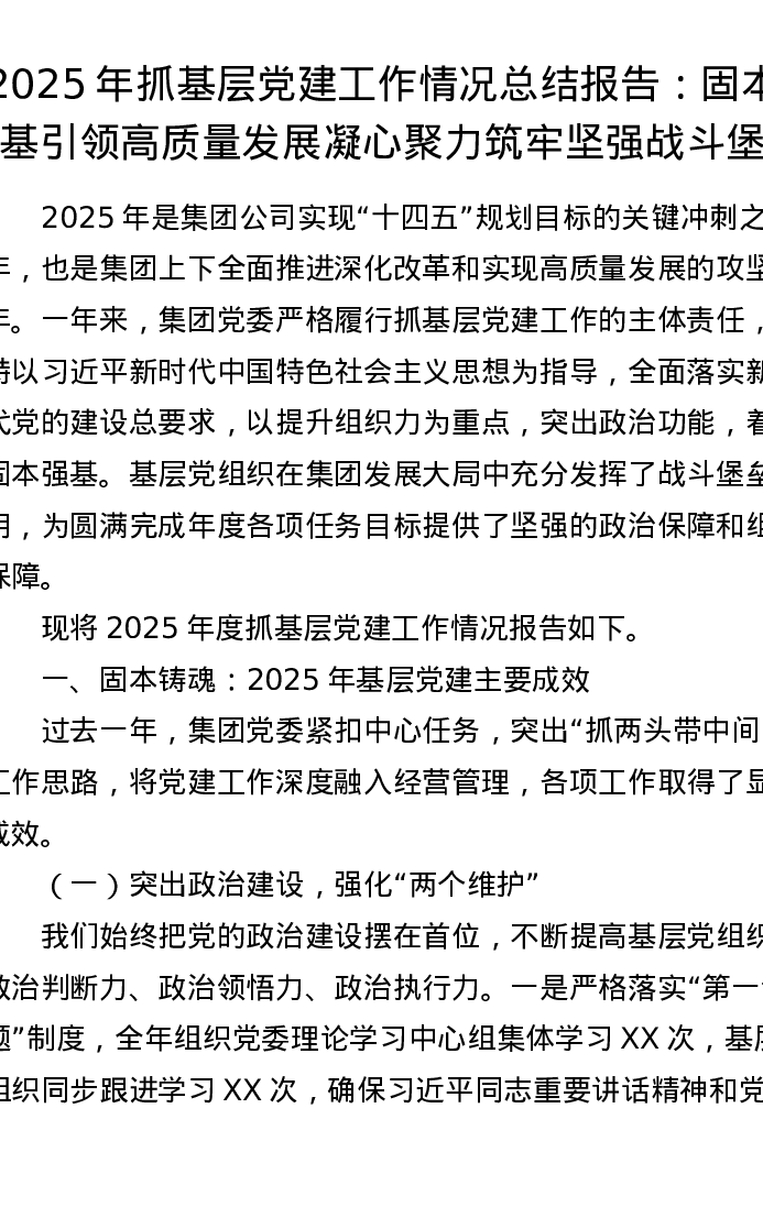 2025年抓基层党建工作情况总结报告:固本强基引领高质量发展 凝心聚力筑牢坚强战斗堡垒