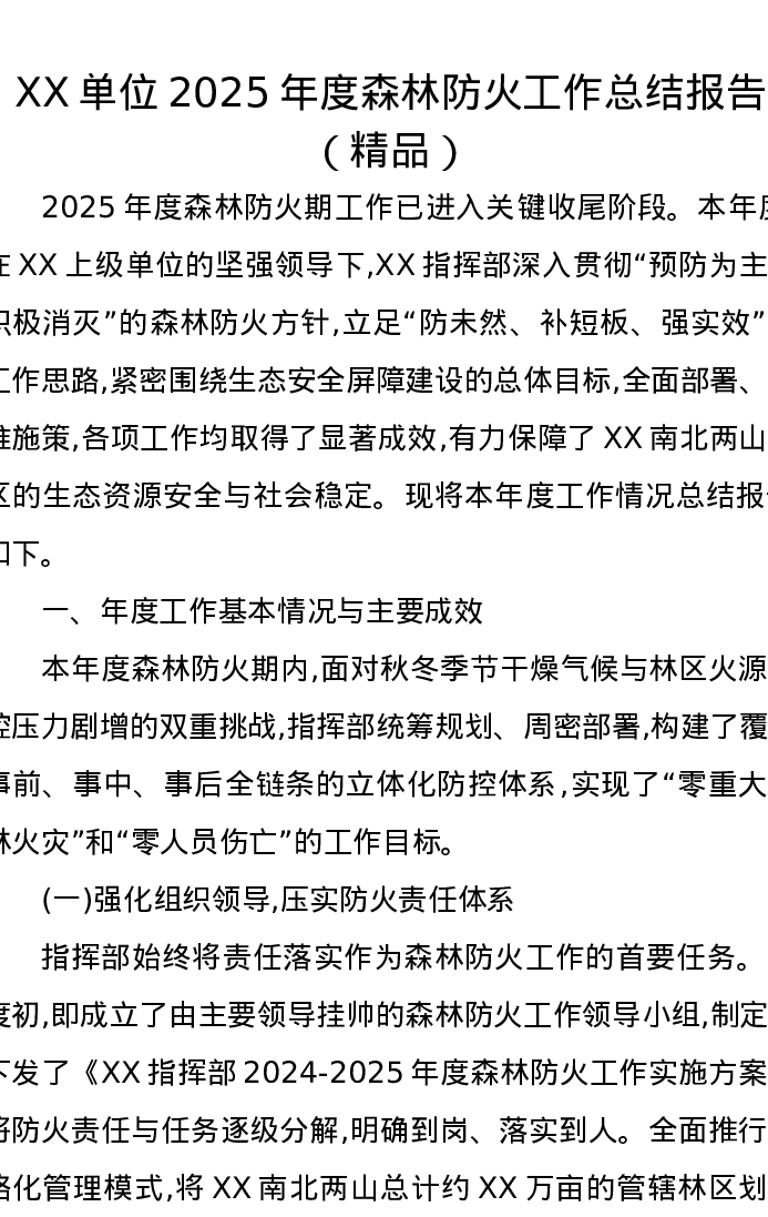 XX单位2025年度森林防火工作总结报告