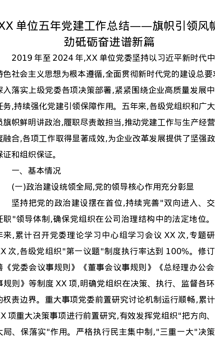 XX单位五年党建工作总结——旗帜引领风帆劲砥砺奋进谱新篇2