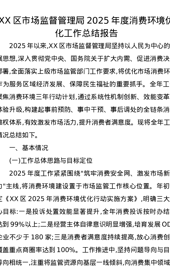 XX区市场监督管理局2025年度消费环境优化工作总结报告
