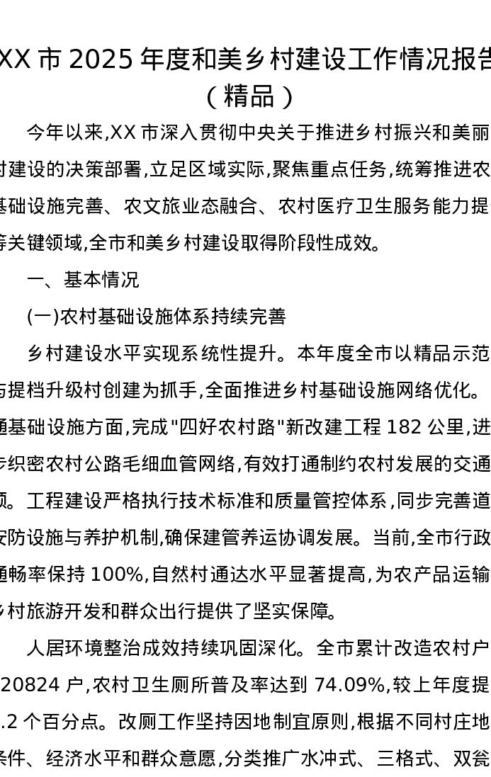 XX市2025年度和美乡村建设工作情况报告