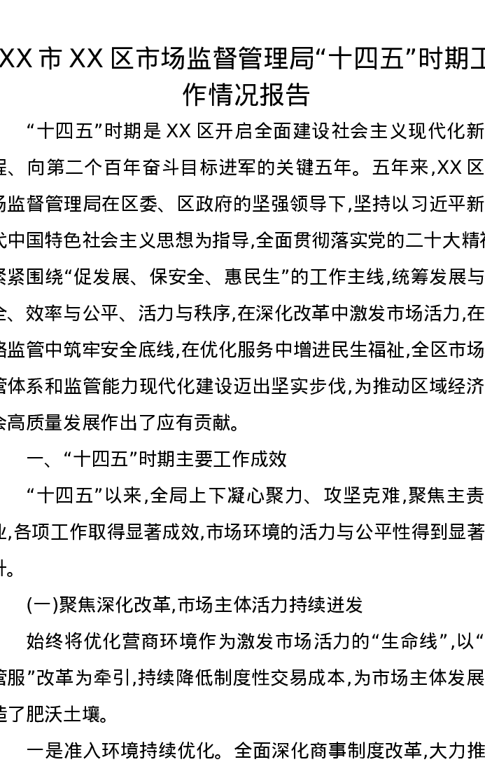 XX市XX区市场监督管理局“十四五”时期工作情况报告