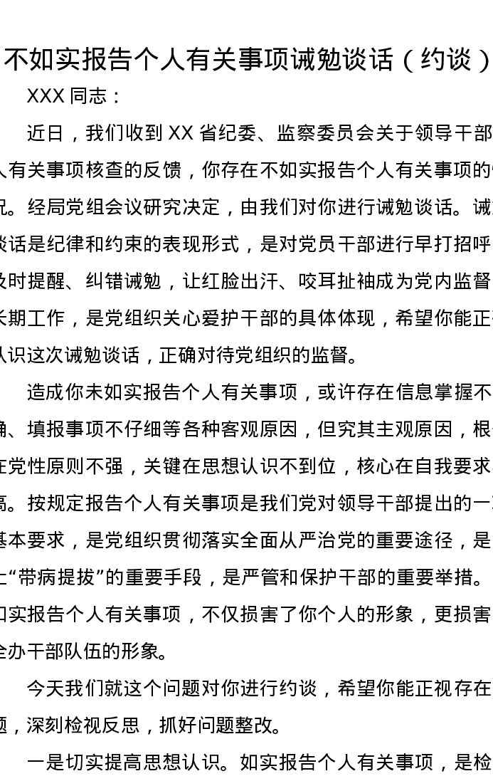 不如实报告个人有关事项诫勉谈话(约谈)