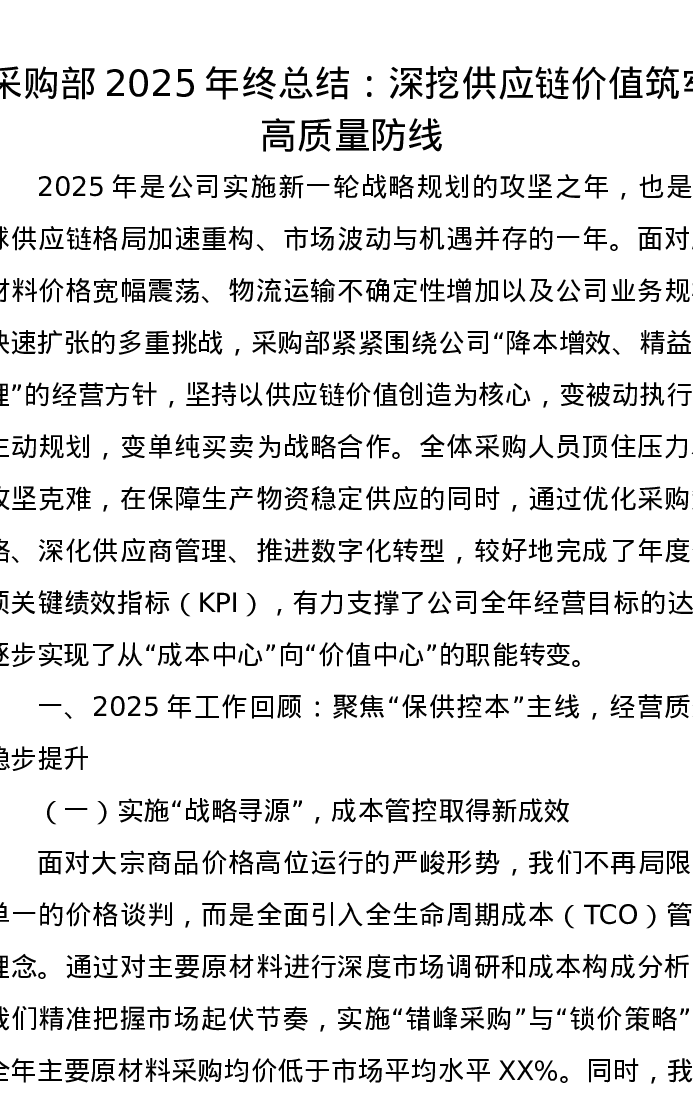 采购部2025年终总结:深挖供应链价值 筑牢高质量防线