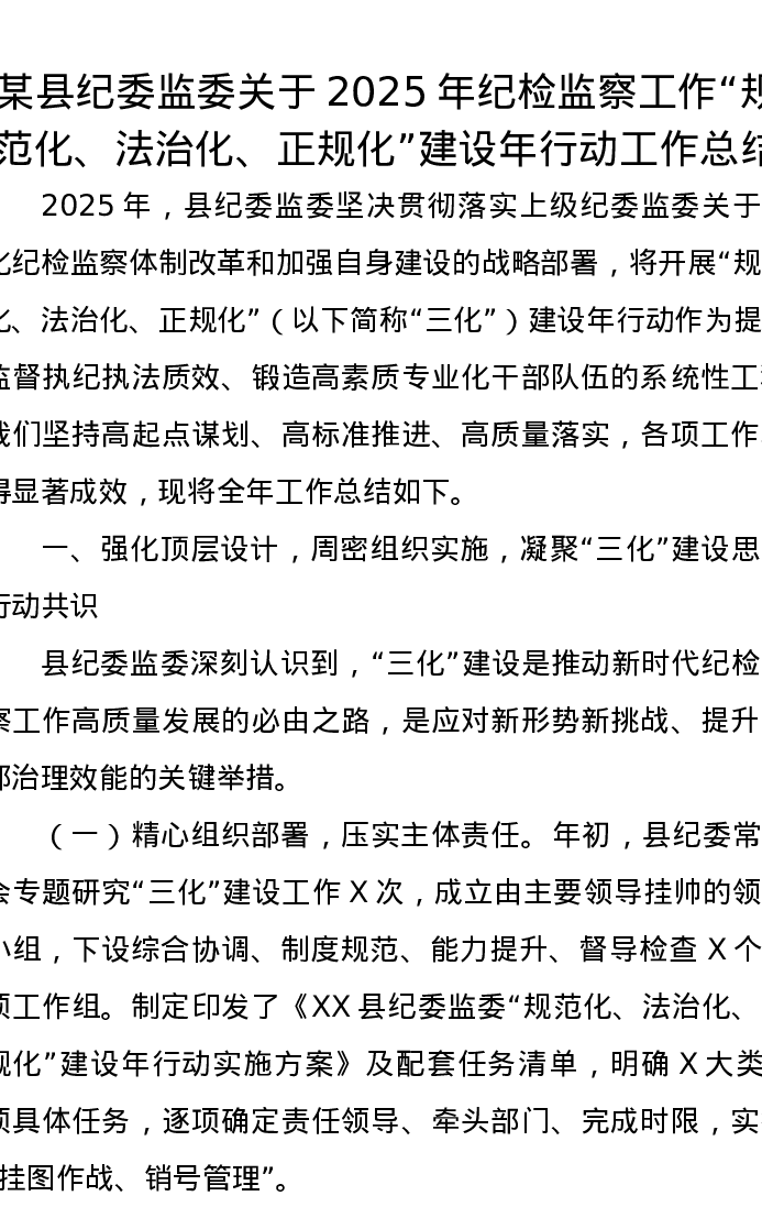某县纪委监委关于2025年纪检监察工作“规范化、法治化、正规化”建设年行动工作总结