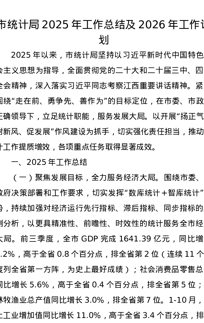 市统计局2025年工作总结及2026年工作计划