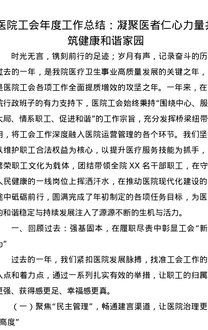 医院工会年度工作总结:凝聚医者仁心力量 共筑健康和谐家园