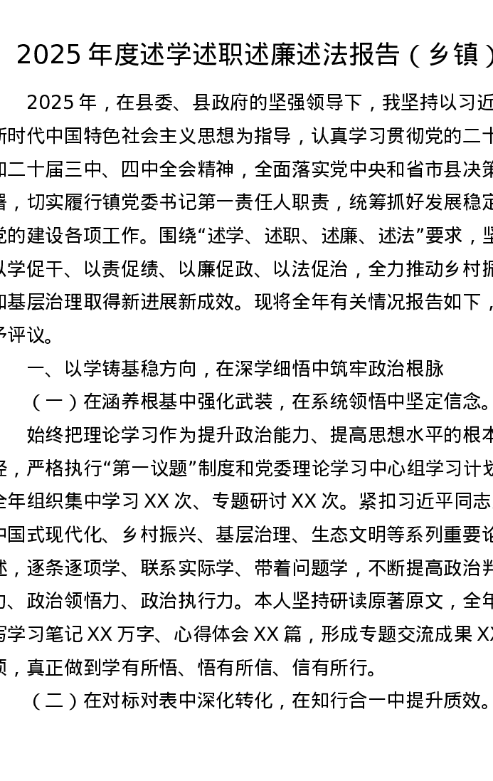 2025年度述学述职述廉述法报告(乡镇)
